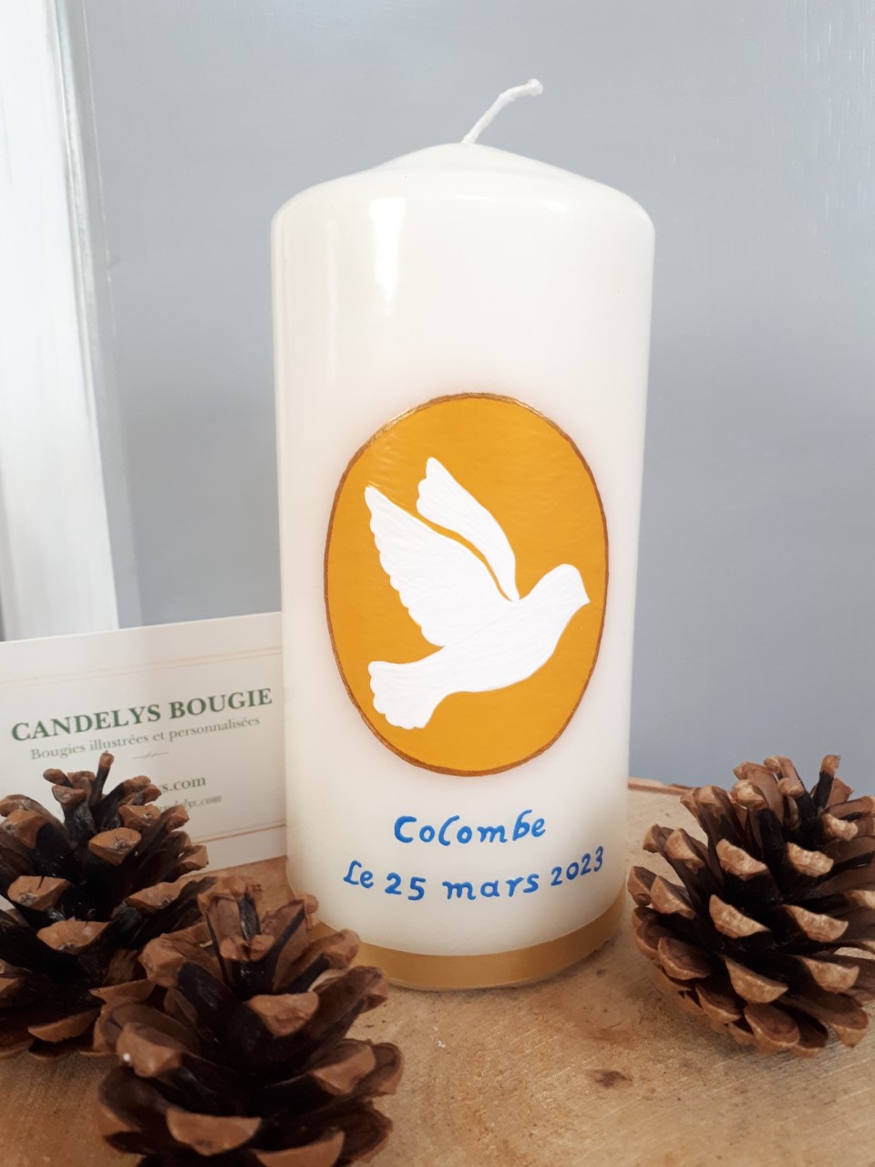 Colombe médailllon jaune d’or Candelys Bougie Full size 960 × 1280 pixels Colombe Médaillon (Confirmation)